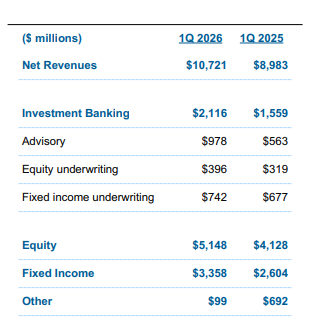 周三(4月15日)好意思股盘前,摩根士丹利在官网发布了2026年第一季度功绩文牍,营收录得205.8亿好意思元,同比飞腾16%,强于伦敦证券往返所集团(LSEG)预期的197.2亿好意思元。
