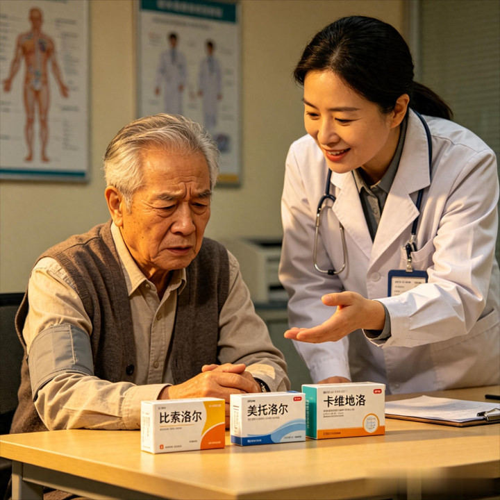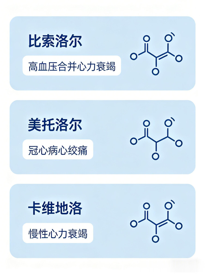 比索洛尔:成心保护腹黑的 “精确卫士”,属于高选择性药物,只针对性作用于腹黑干系受体,不会过多影响其他器官。