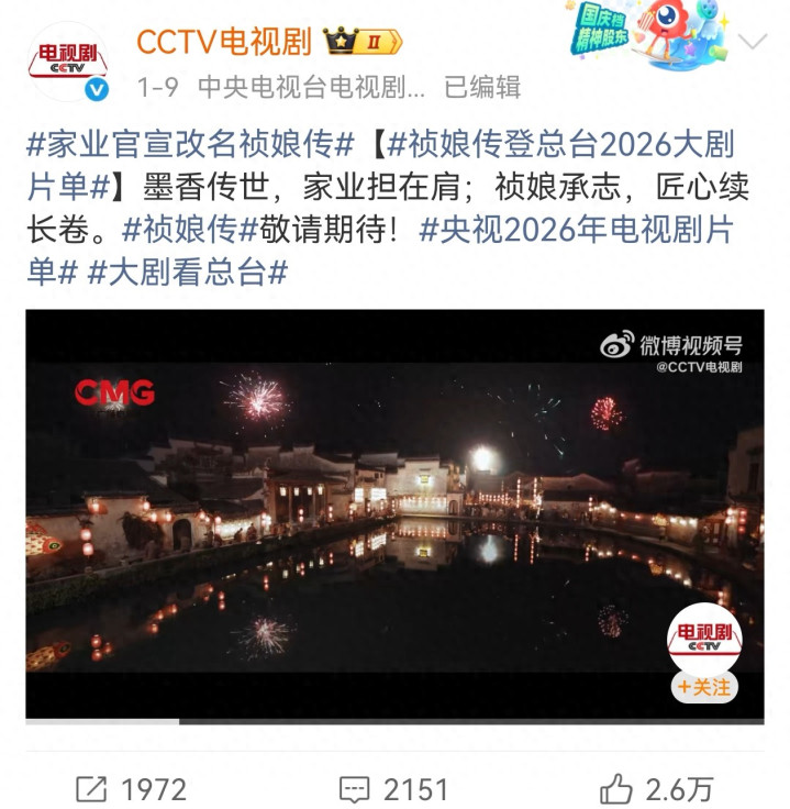 《家业》是国内首部徽墨非遗题材剧,由杨紫、韩东君王演,爱奇艺平台预约量已冲突90万,预报片播放量超千万,是部未播先火的剧。